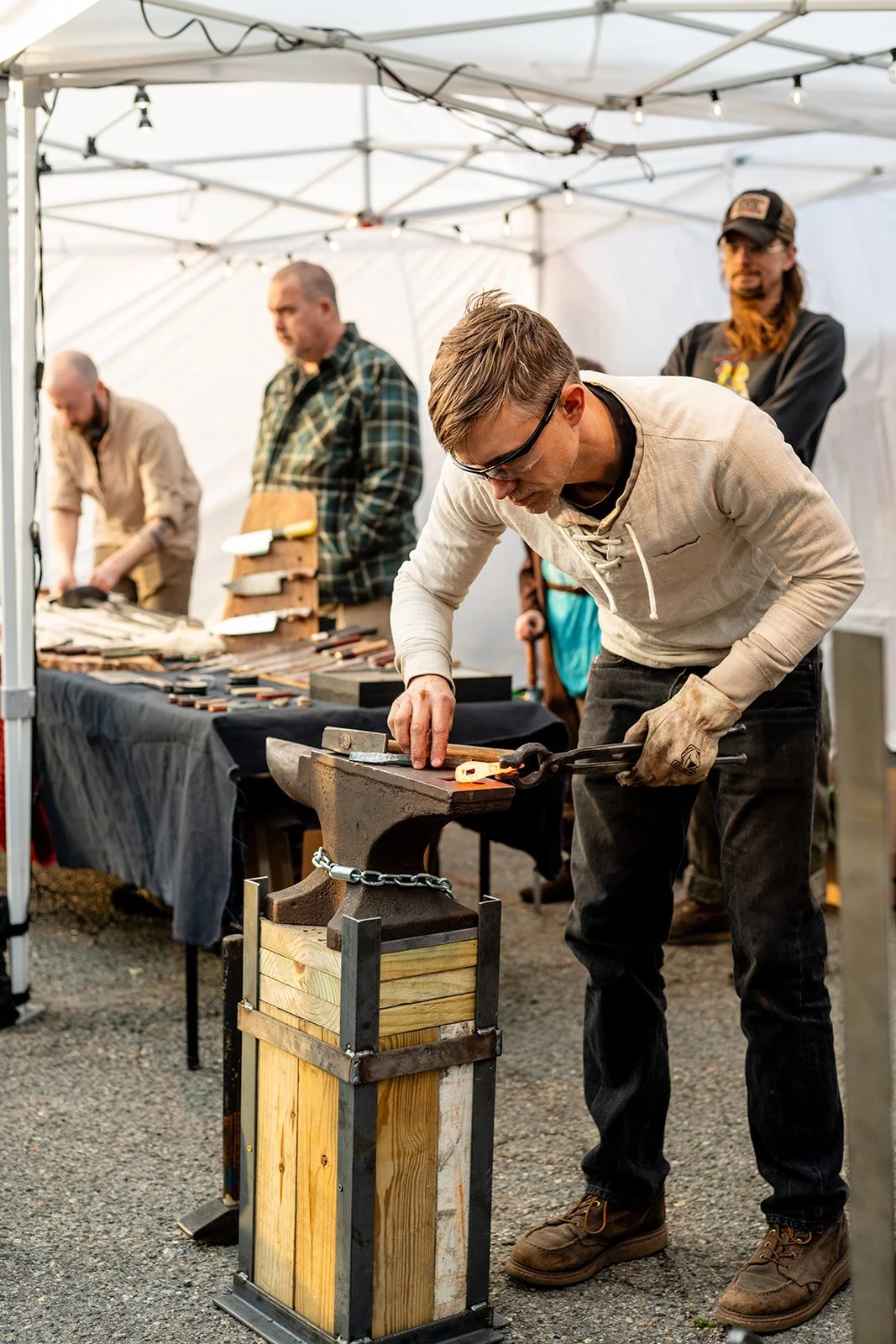 Alongside blade work, Ted Banning brings decades of experience to the anvil, forging medieval-style armor and demonstrating the breadth of metalwork shaped by curiosity and precision. From battle-ready swords to functional tools, this guild reflects the independent craftsman movement, owning fewer, better-made objects, and knowing the hands that forged them. Shaped by community. Bound by defiance. The Iron & Steel Guild reminds us that craft is not just about strength, but about care, solidarity, and purpose when the hammer falls.